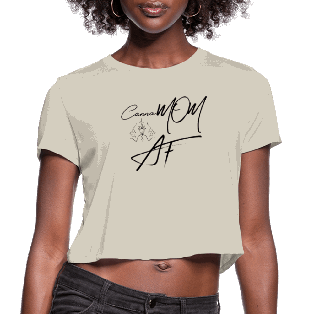Front: CannaMom AF Back: SOCIETY Back Also available in Flowy Full Length Tank This is a CROP TOP so size up if you want it covering the navel.